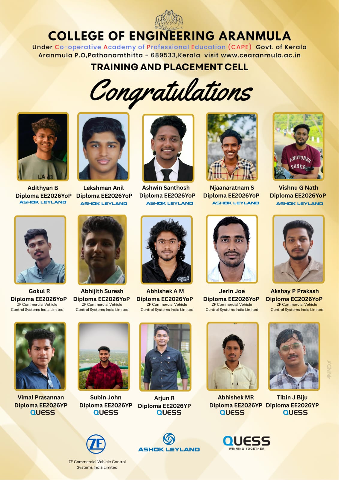 | Prasoon V S | CE | 2020 | Gadiel Pre-Fab Design and Contracting LLP |